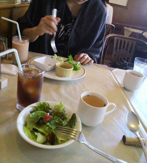 奥でさっちゃんの食べているのがランチセットの前菜です。